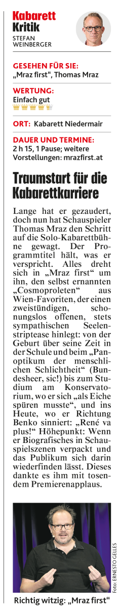| 12. Okt 26 | 19:30 Uhr | Mraz F1rst! | W | Wien | Kabarett Niedermair | > Tickets |